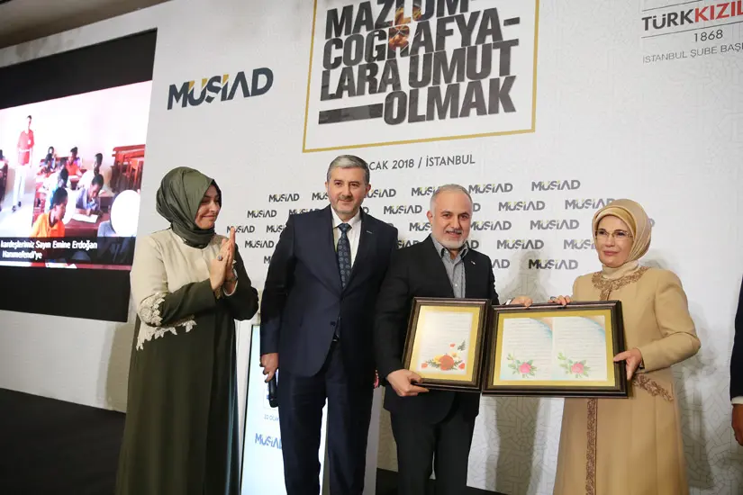Cumhurbaşkanı Recep Tayyip Erdoğan’ın eşi Emine Erdoğan, Müstakil Sanayici ve İşadamları Derneği (MÜSİAD) Kadın Çalışma Grubu’nun Arakan, Etiyopya ve Suriye için düzenlediği “Mazlum Coğrafyalara Umut Olmak” temalı hayır yemeğine katıldı.