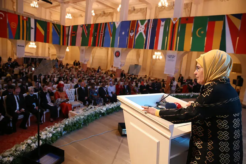 Afrika Birliği’nin kuruluş yıl dönümü olarak kutlanan 25 Mayıs Afrika Günü vesilesiyle Gazi Üniversitesi’nde düzenlenen toplantıda konuşan Cumhurbaşkanı Recep Tayyip Erdoğan’ın eşi Emine Erdoğan, “Türk milletinin Afrika’ya olan ilgisi çıkara değil, gönül bağlarına dayanıyor” dedi.