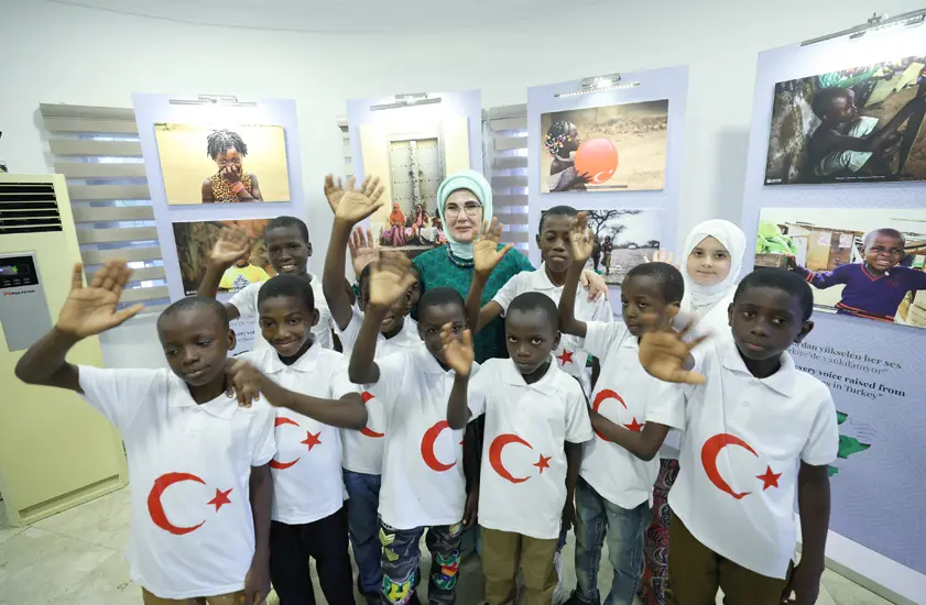 Emine Erdoğan, daha sonra Yunus Emre Enstitüsünde Türkçe öğrenen Nijeryalı çocuklarla bir araya geldi. Nijeryalı öğrenciler tarafından gerçekleştirilen flüt dinletisinde “Katibim” eseri de sunuldu. Ayrıca çocuklar tarafından ezberlenen İstiklal Marşı’nın 10 kıtası seslendirildi. Emine Erdoğan, çocuklarla sohbet edip, fotoğraf çektirdi.