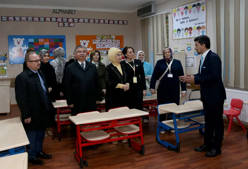 Emine Erdoğan'a ziyaretinde Millî Eğitim Bakanı İsmet Yılmaz ve Maarif Vakfı Başkanı Birol Akgün'ün yanı sıra Genelkurmay Başkanı Orgeneral Hulusi Akar'ın eşi Şule Akar ile heyette bulunan bazı bakanların eşleri de eşlik etti. Program, aile fotoğrafı çekimiyle sona erdi.